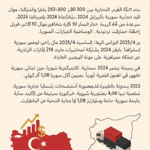 ووفقًا لبيانات يناير/كانون الثاني 2024، صدّرت تركيا ما يقارب 161 مليون دولار أمريكي إلى المناطق الشمالية من سوريا بين 1 و25 يناير/كانون الثاني، وارتفعت الصادرات بنسبة 35.5% خلال هذه الفترة، لتصل إلى 219 مليون دولار أمريكي. يُعد هذا المؤشر مؤشرًا قويًا على انتعاش التجارة.